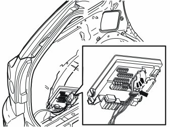 - Disconnect the connector on the D-post panel (if the car has a loudspeaker in the D-post, the connector is in the loudspeaker)