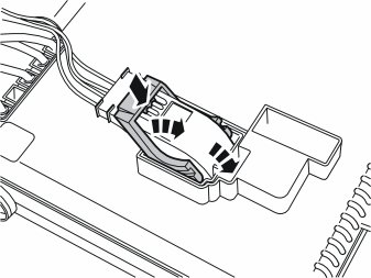 - Carefully prise apart the sides of the connector holder in the ends so that the connector can pass by the retaining hooks.