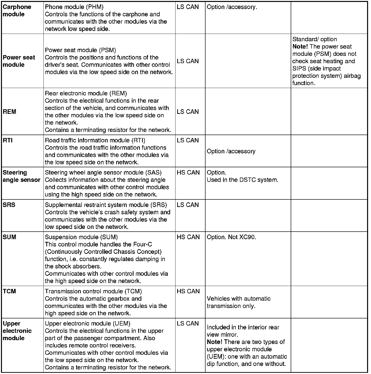 The number of control modules in the CAN network varies depending on the car model, equipment level and structure week, The structure week and construction week are not necessarily the same week. The construction week is the week in which the vehicle is built in the factory. The content of the vehicle is steered towards structure week. A structure week may extend over a number of construction weeks. Structure weeks are specified in the format YYYYWW.