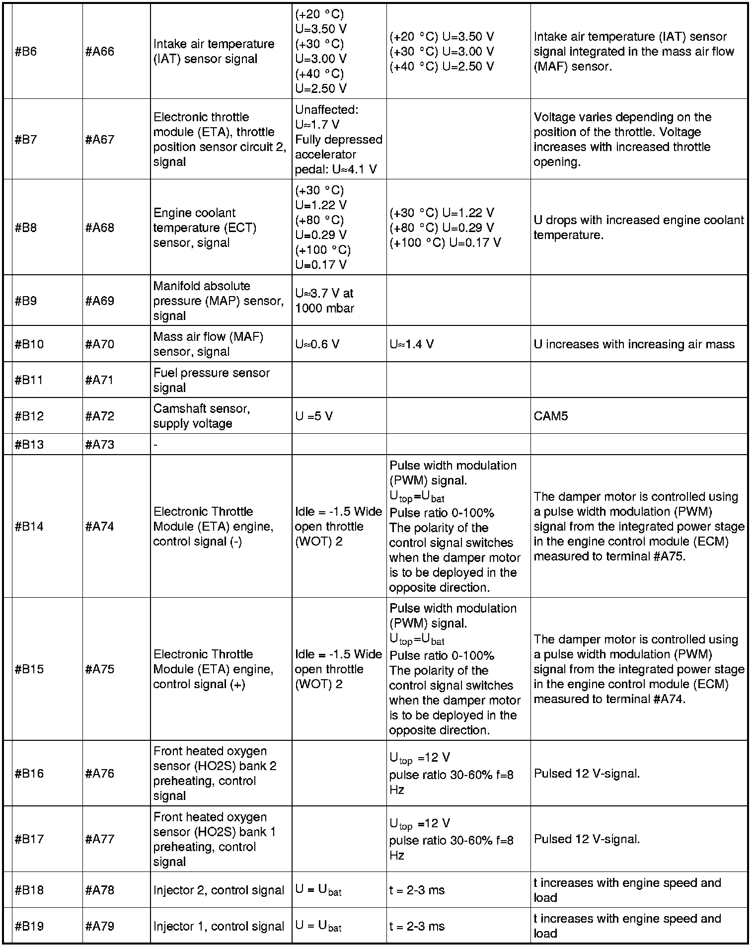 Signal Specification, Engine Control Module (ECM)