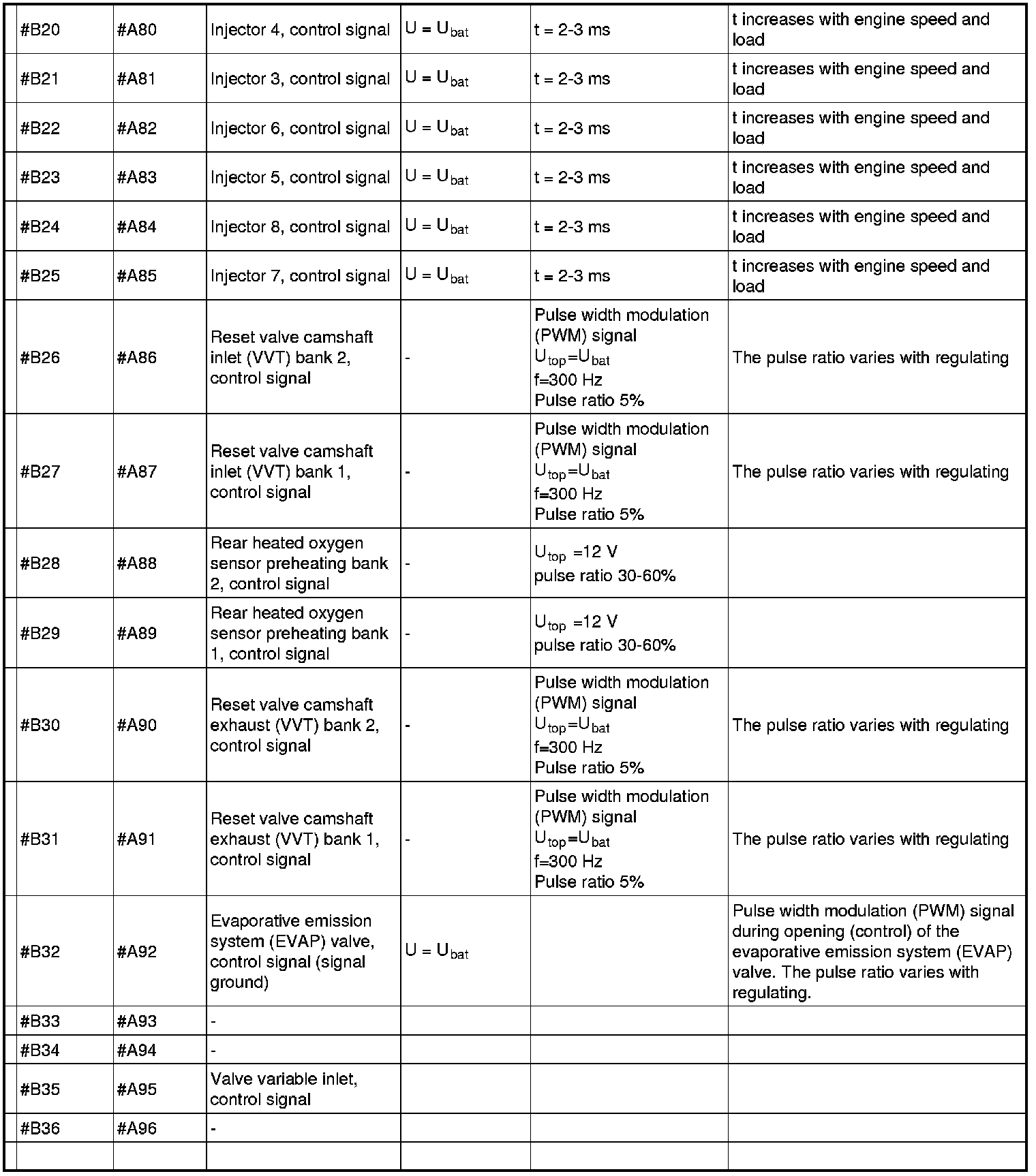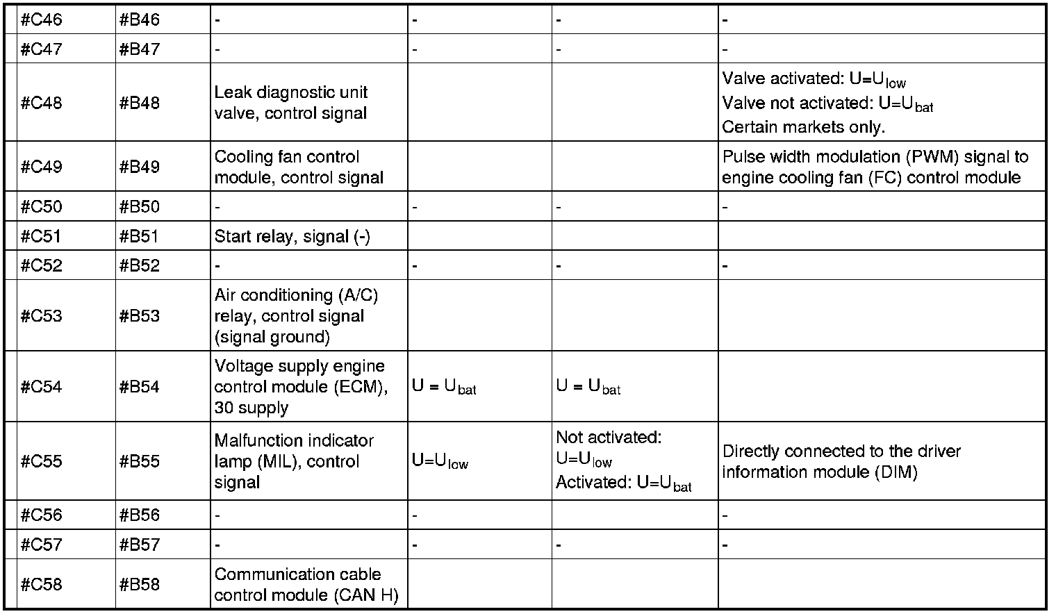 Signal specification, engine control module (ECM)