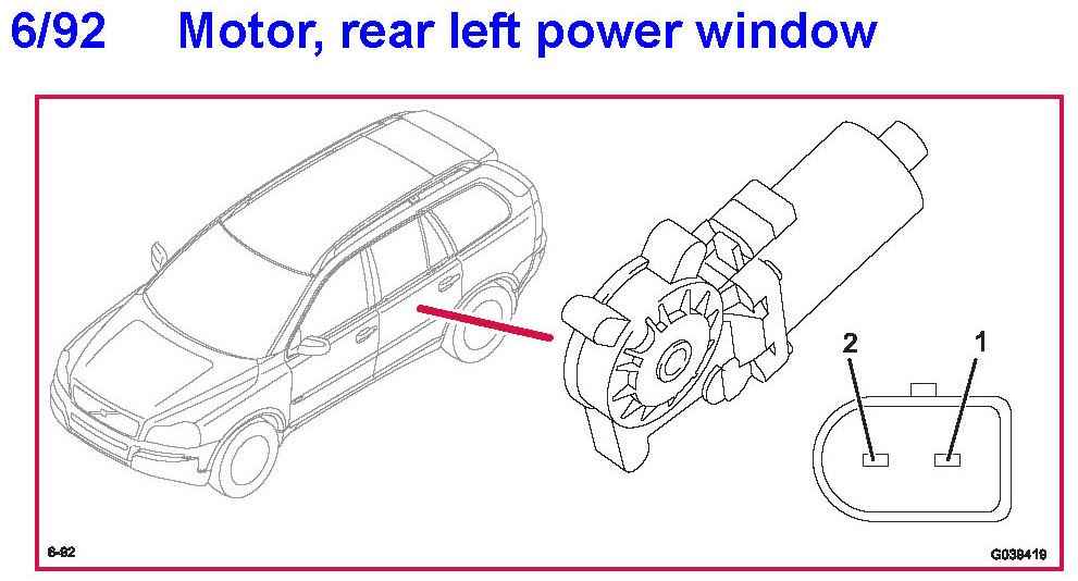 6/92 Motor, Rear Left Power Window