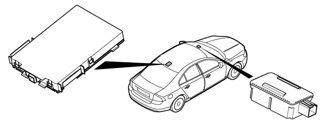 The remote key has a built-in communication circuit and a memory. A coded signal is sent when a button on the remote key is pressed. This signal is received by the Remote Receiver Module (RRX) receiver and forwarded to the central electronic module (CEM). For the remote key to work with the system, a unique code in the remote key must be learnt by the central electronic module (CEM). This takes place during installation at the factory.