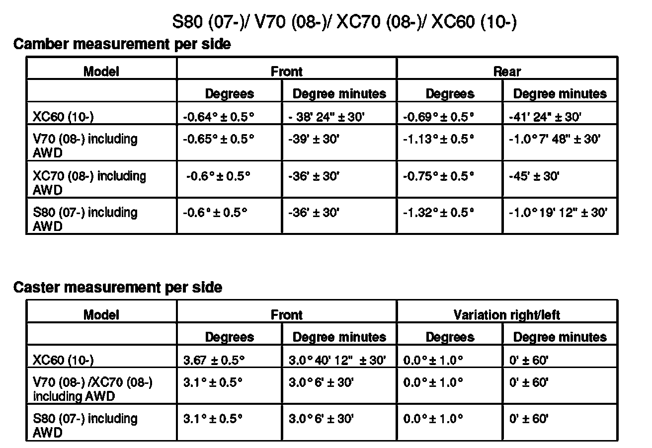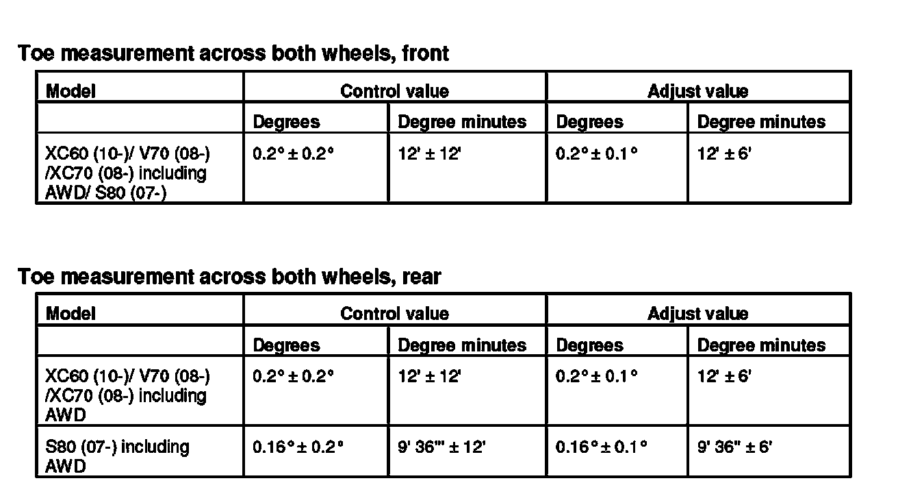 Note! All published toe values are for total toe measurement (left and right wheels together).