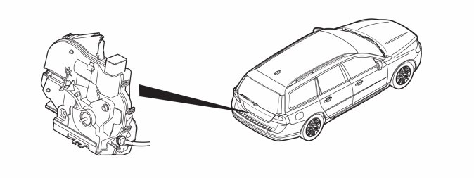 The lock unit in the tailgate is directly connected to the Central electronic module (CEM), Keyless vehicle module (KVM) and Power Operated Tailgate Module (POT) (option).