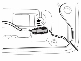 - Secure the antenna cable and the excess on the reverse of the A post panel using pieces of butyl tape.