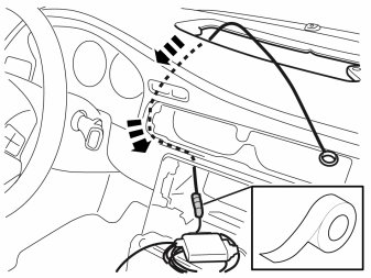 - Route the cable to the GPS cradle and place the loudspeaker to one side.