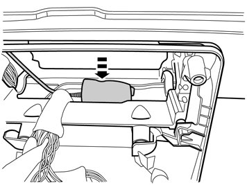 - Take the loudspeaker grille with GPS holder and connect the routed connector.