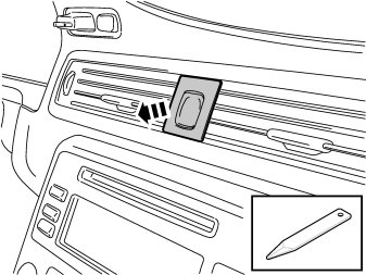 - Press in the catch at one of the panel's upper corners. Use a small screwdriver. Carefully pry off the radio panel on the same side. Use a plastic weatherstrip tool.