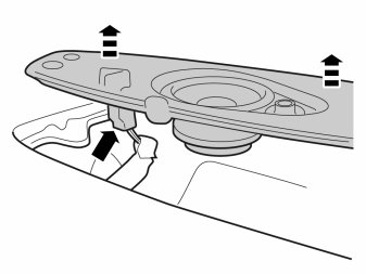 - Insert the wire through the hole (1) in the recess, where the loudspeaker was, and out.