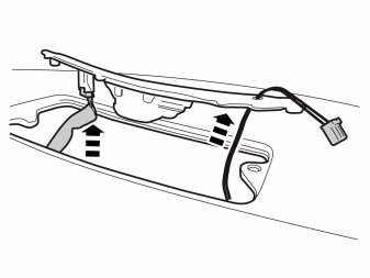 - Pull the cable up and out through the hole in the recess. Route the cable harness so that there is no risk of wear and that the ventilation vents are not blocked when they are to be reinstalled.