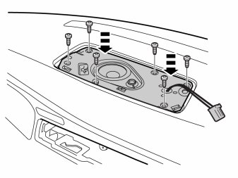 - Take the loudspeaker grille with holder and connect the routed connector.