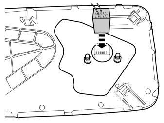 - Secure the connected connectors at the bottom of the space where the loudspeaker was, using a piece of butyl tape.