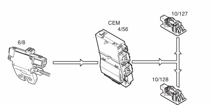 Interior/footwell/sun visor/glove compartment lightingNote! The market in Japan has Remote Keyless Entry (RKE) for model year 2008-2009 regardless of whether the vehicle is equipped with keyless entry system or not. When the vehicle is not equipped with keyless entry system, the Remote Keyless Entry (RKE) communicates directly with Central electronic module (CEM). If the vehicle is equipped with keyless entry system, the Remote Keyless Entry (RKE) communicates via Keyless Vehicle Module (KVM).