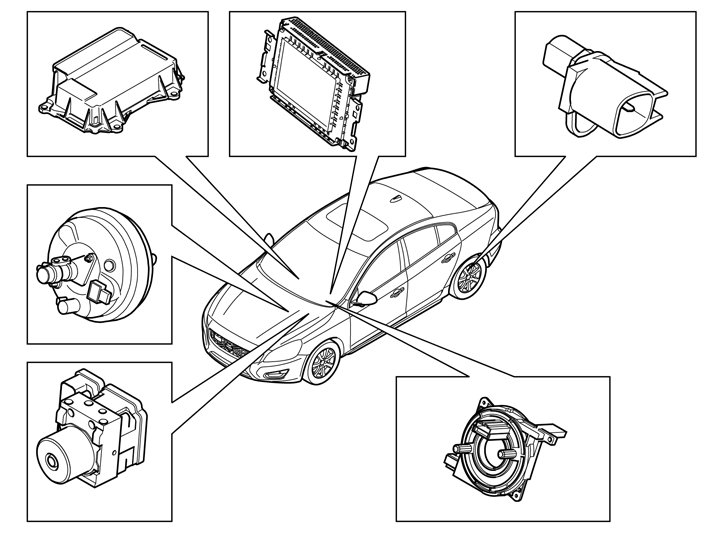 The function works by Closing velocity module (CVM), located behind the rearview mirror, using a laser sensor and registers any traffic in front of the vehicle. In case of major collision risk the Closing velocity module (CVM) sends a request for braking to Brake control module (BCM).