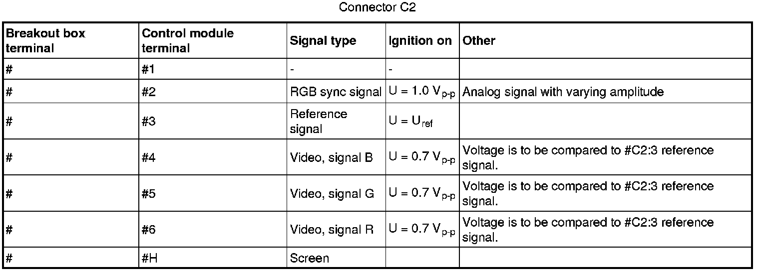 All values below are measured between the relevant terminal in column 1 and A1 in column 2 (effect ground) unless otherwise stated in parenthesis after the table entry.