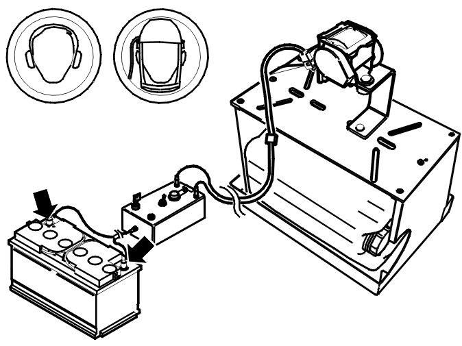 Connect the discharge box to a fully charged 12 V battery.