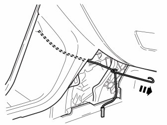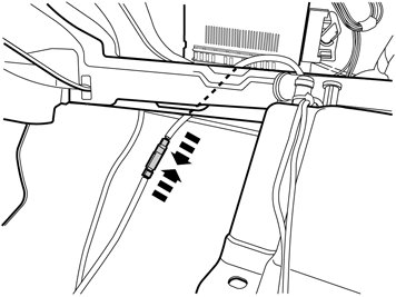 - Route the cable on the right-hand side of the tunnel console. If it is difficult to route, bend a thin piece of wire and insert it to route the cable through (Image B).