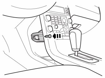 - Drill a -9 mm (33/64") hole in the panel in front of the center console as illustrated. Predrill first using a smaller drill bit. Use a drill stop.