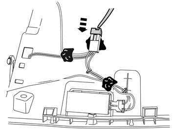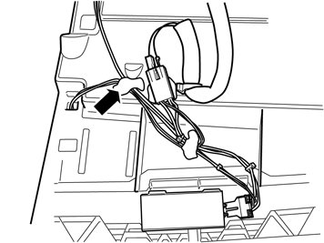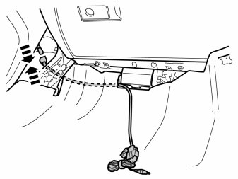 - Connect the cable from the cradle to the cable routed to the rear edge of the glove box. Ensure that the cable goes under the member.