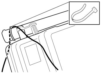 - Detach the Velcro strip from the long rolled up black cable. Pull up the cable in front of the air duct and in through the hole at the upper edge of the glovebox's left front corner.