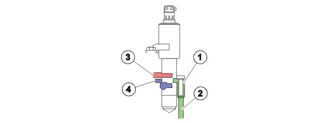 - The oil passes the filter for the camshaft reset valve (2) and then on to the reset valve (3).