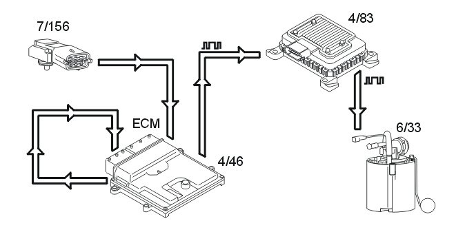 The engine control module (ECM) continuously monitors the fuel pressure using the signal from the fuel pressure sensor. This allows the desired fuel pressure to be reached, and if necessary a signal is transmitted to the fuel pump control module requesting that the fuel pressure is adjusted.