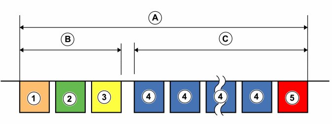 The numbers in the different fields correspond to the parts of the message described in the list above.