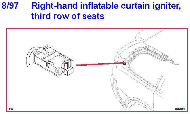8/97 Right-Hand Inflatable Curtain Igniter, Third Row of Seats