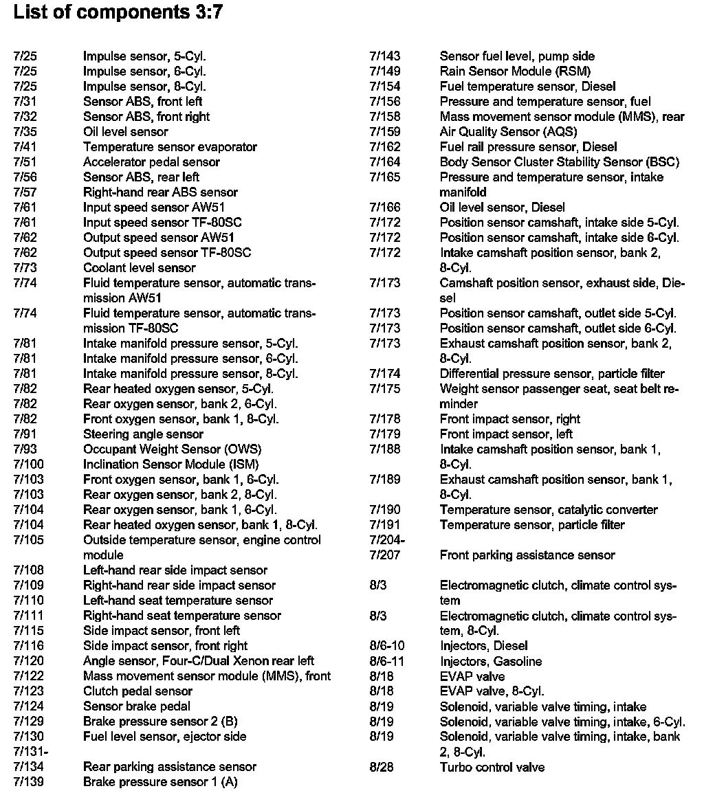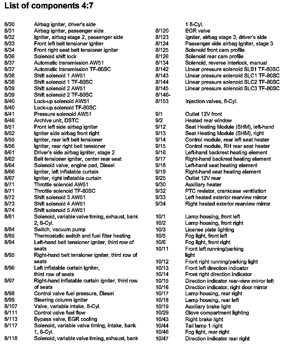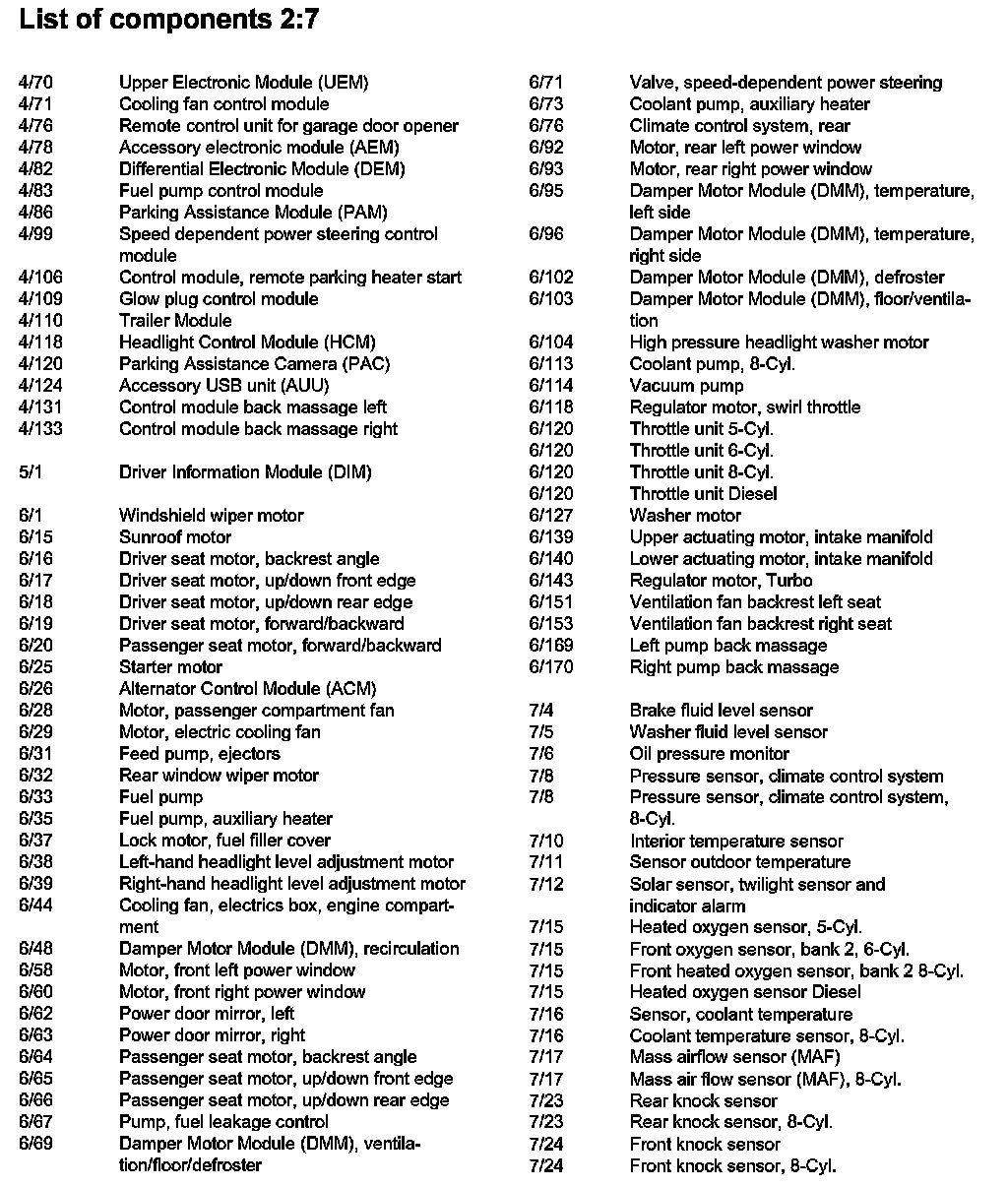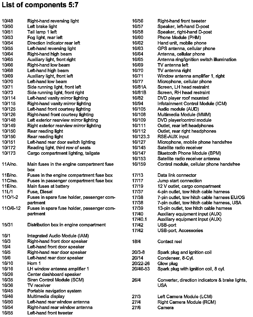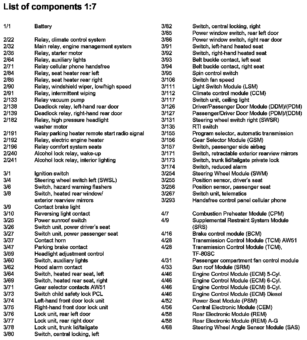 List of Components By Component Number