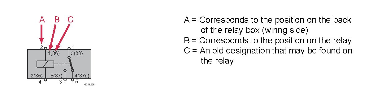 The diagram indicates two or three different designations for the relay's position. This is described below.