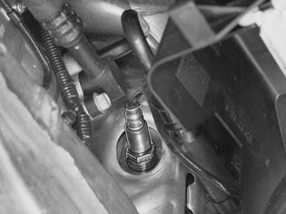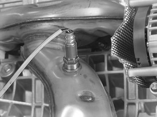 Unplug the connector of the front heated oxygen sensor from above. Remove the oxygen sensor using 999 5543 SOCKET NV-22 HO2S 999 5543 Socket NV-22 HO2S.