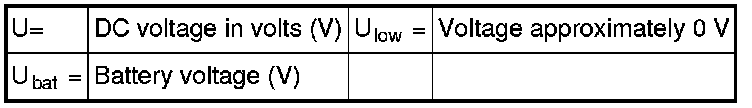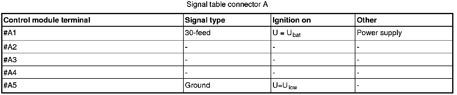 All the values given below are between the respective terminal in column 1 and terminal #A5 in column 2 (power ground) unless otherwise stated in brackets after the table entry.