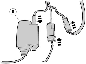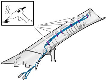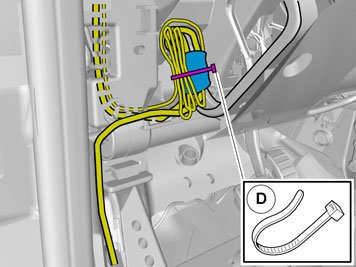 Clamp the cables and connectors to the existing cables to prevent noise.