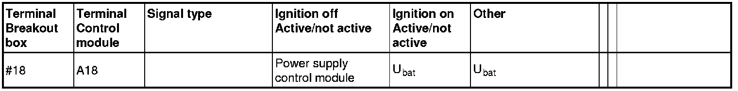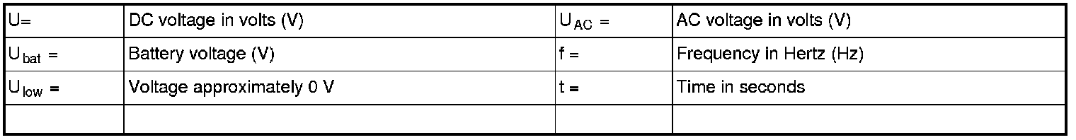 All the values given below are between the respective terminal in column 1 and terminal #A9 in column 2 (power ground) unless otherwise stated in brackets after the table entry.