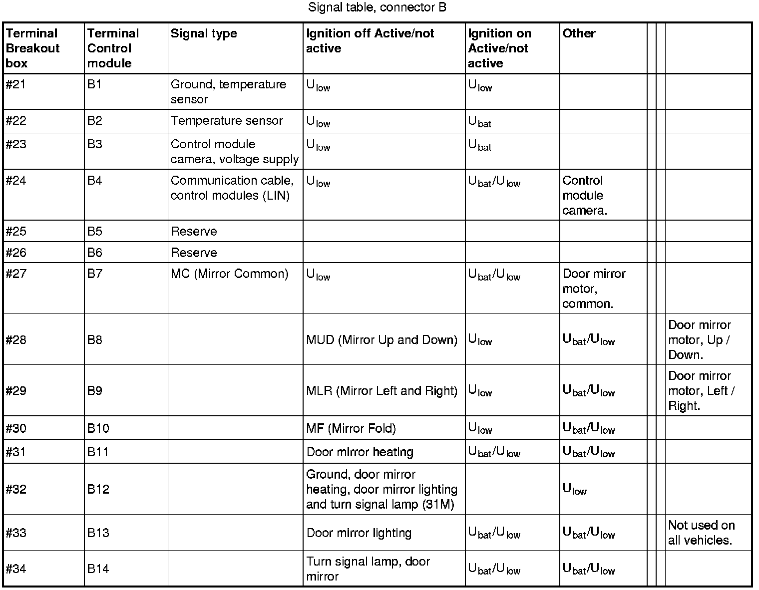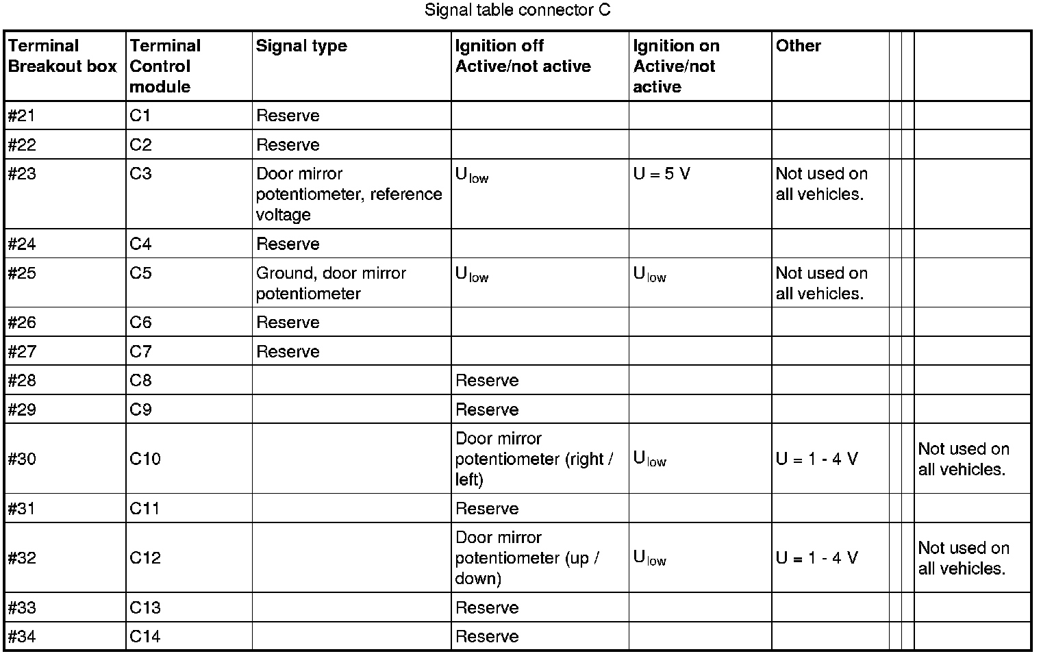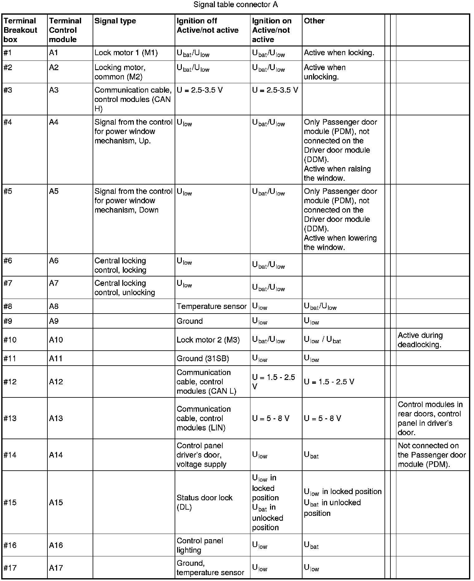 Signal Specification, Driver's Door Module / Passenger Door Module (DDM/PDM)