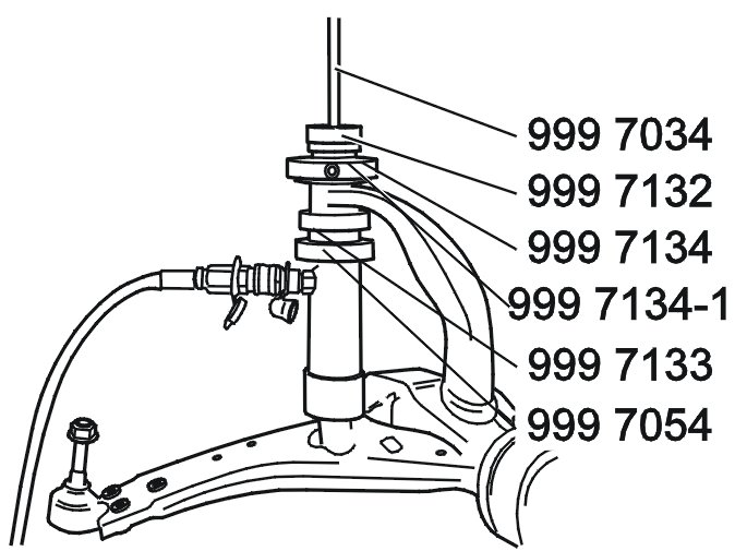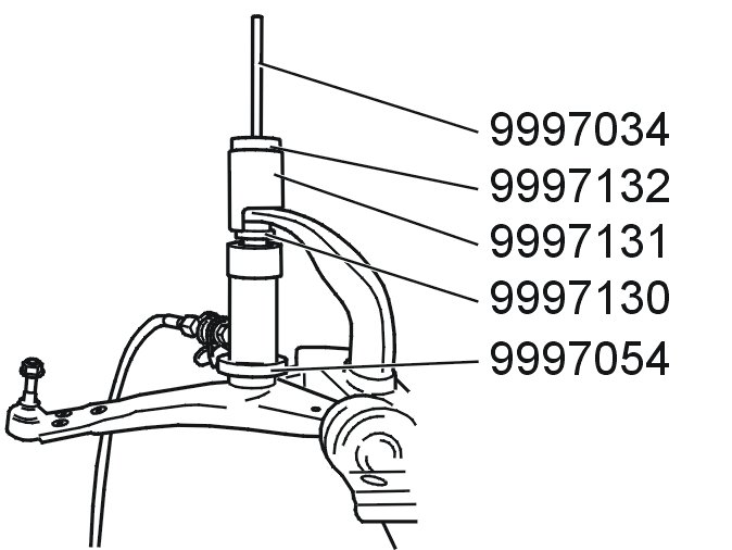 Pull in the bushing until it is centered in the link arm. Pull the bushing in approximately halfway and then remove: 999 7134 Conical socket 999 7134 Conical Socket.