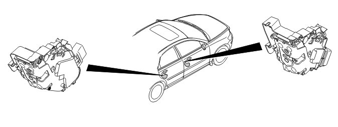 The rear door control modules are directly connected to the lock motor in each door. The door control modules lock and unlock the door on receipt of a command from the front door control module.