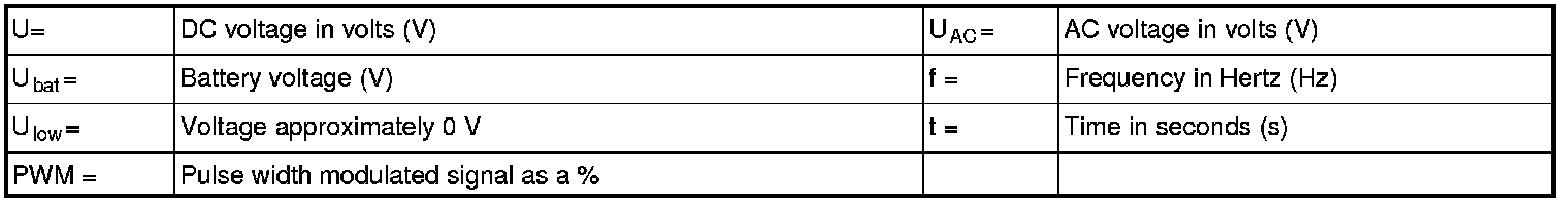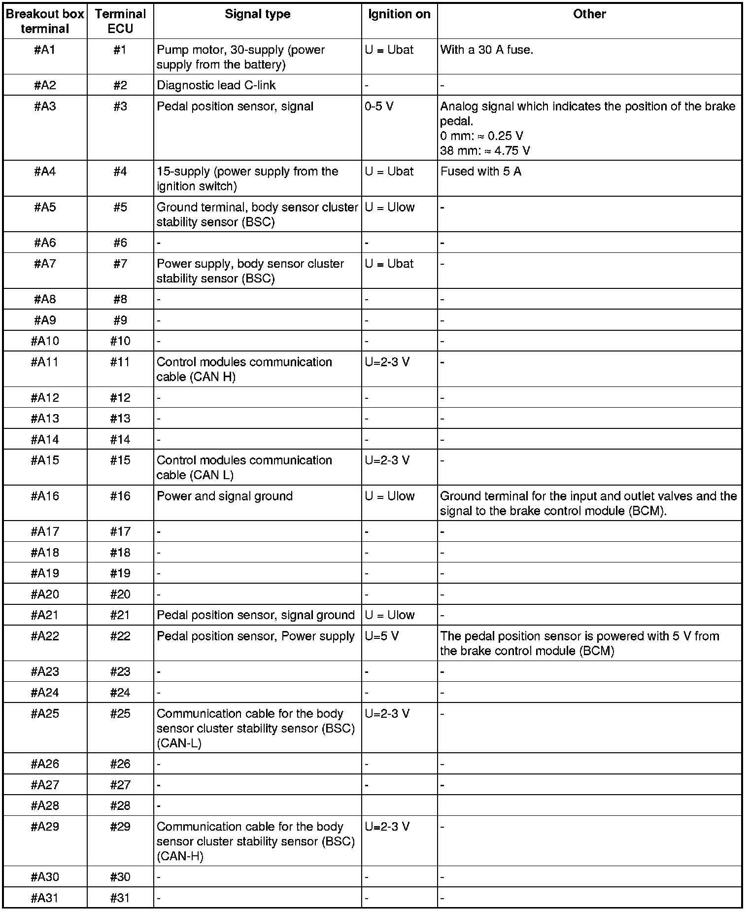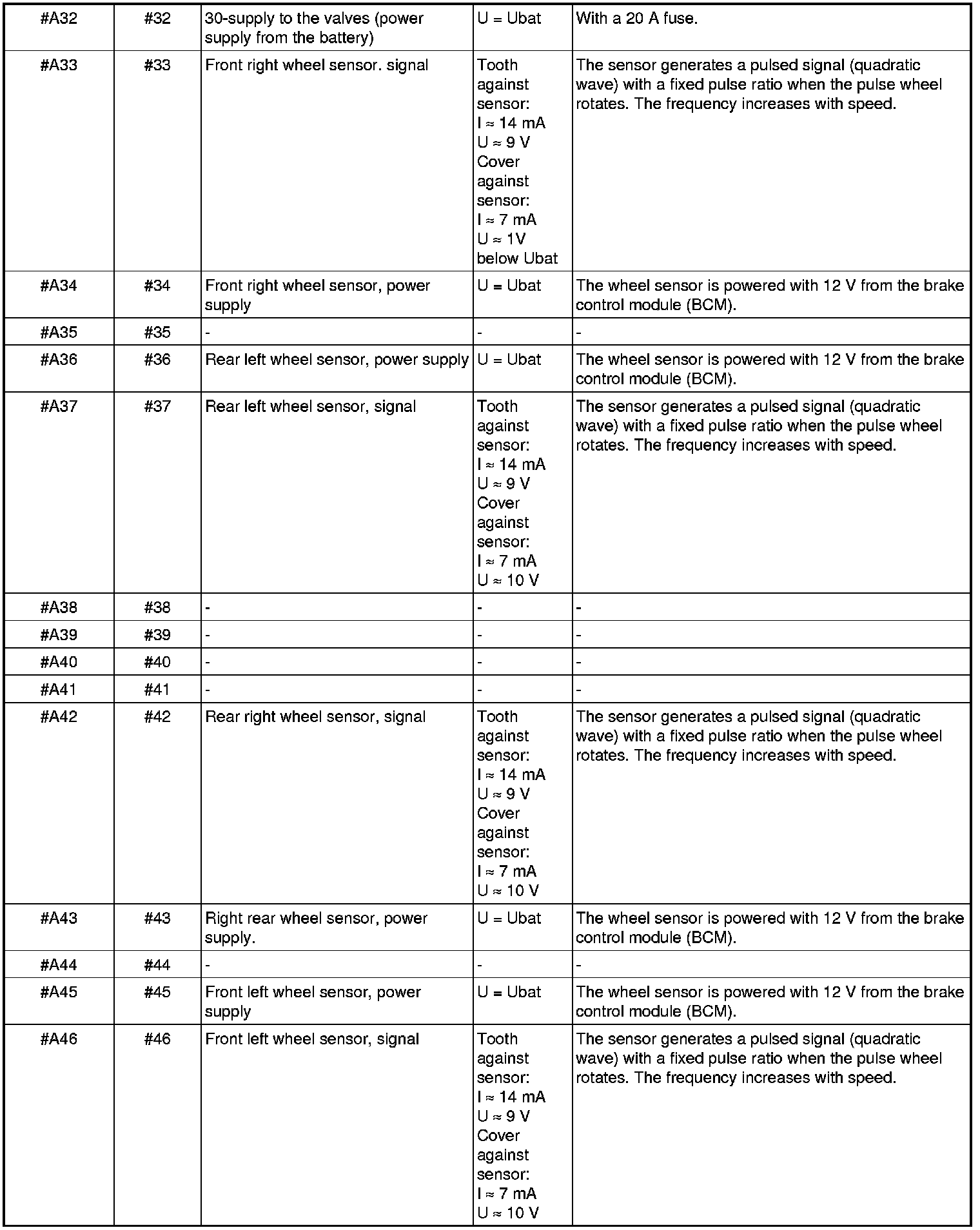 All values given are between the relevant terminal in column 1 and terminal #A16 or #A47 (ground), unless otherwise indicated in brackets.