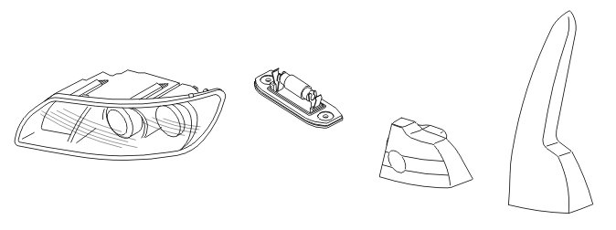 There are a number of lamps positioned around the car to mark its position. These are in the headlamps, tail lamps and on the front fenders (US model). The lamps light together with the number plate lighting when the light switch module (LSM) is in parking lamp mode or low beam is on.