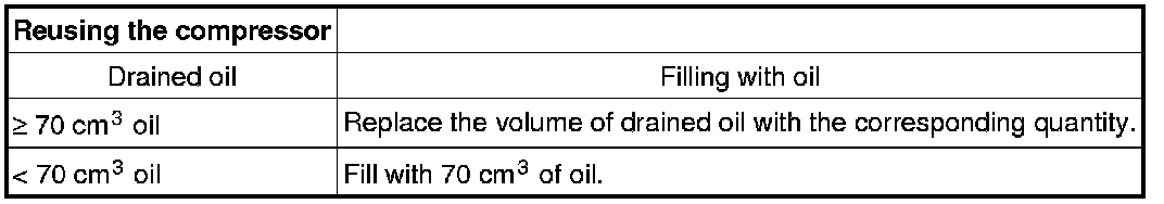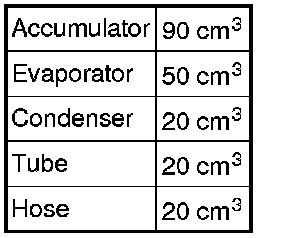 When replacing components, the oil volumes set out below must be present in the new components or filled into the system through the service valve, except for the compressor. See Compressor below.