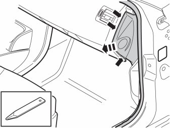 - Remove the panel on the right end of the dashboard. Carefully pry it loose all around with a weatherstrip tool, until the three legs release.