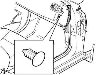 - Drill a - 10 mm (25/64") hole on the left side of the glove compartment's outer part.