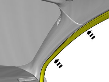 - Secure the antenna cable and the excess on the reverse of the A post panel using pieces of butyl tape.