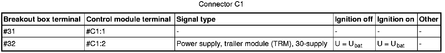 All the values given below are between the terminals stated in column 1 and terminal #C2:4 in column 2 (power ground).