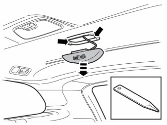 - Carefully pry off the cover at the rear of the roof panel using a weatherstrip tool. The cover is secured by two catches.