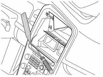 - Insert a small screwdriver in the gap on the media player. Push it in and carefully pry off the surround on one side using a weatherstrip tool. Repeat on the other side and remove it.