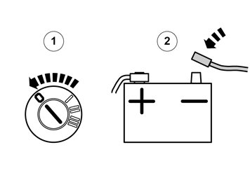 Warning! When switching the ignition on first time after a battery disconnect and connect, stand outside the vehicle and reach into the vehicle keeping clear of the air bags operating areas.