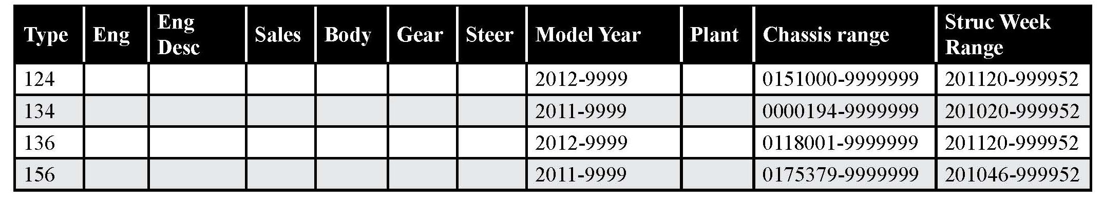 Important Note For Sensus vehicles between structure weeks 201020 and 201045: