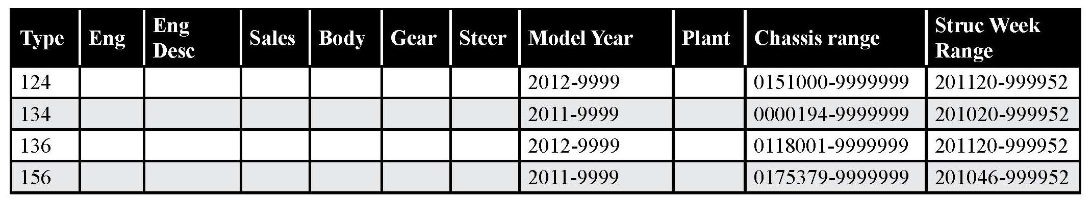 Important Note For Sensus vehicles between structure weeks 201020 and 201045: